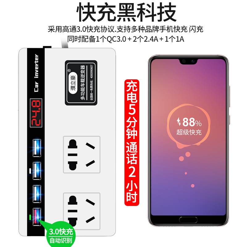 车载逆变器12V24V转220V多功能电源转换器汽车货车通用智能充电器