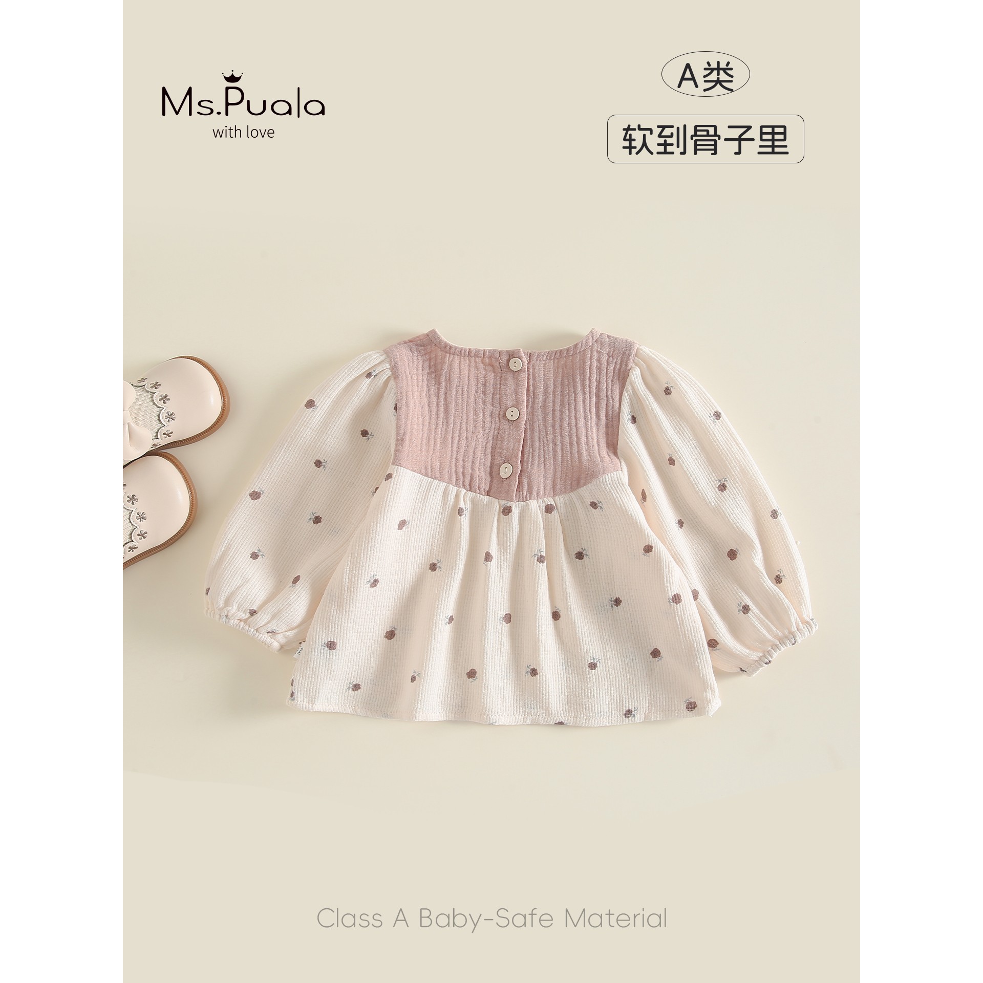 Ms.Puola女童宝宝小衫秋季韩系童装婴幼儿纯棉拼色套头衬衫上衣