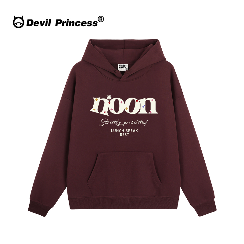 美式复古字母印花酒红色连帽卫衣女oversize宽松显白重磅潮牌上衣