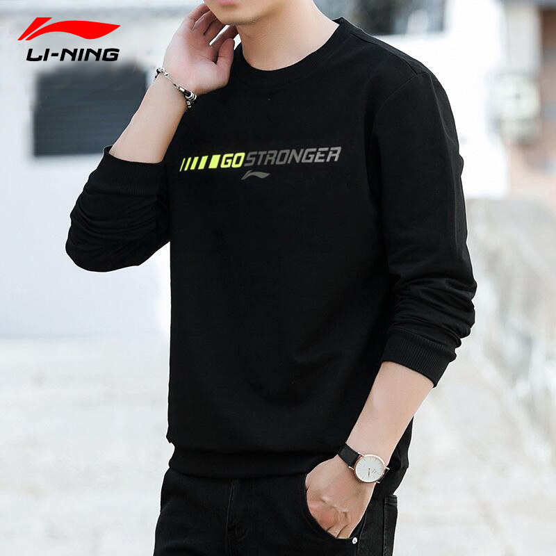 李宁棉质圆领长袖休闲套头衫卫衣