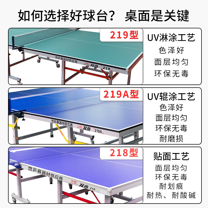 双鱼乒乓球桌家用带轮折叠乒乓球台移动式室内标准219A家庭球桌