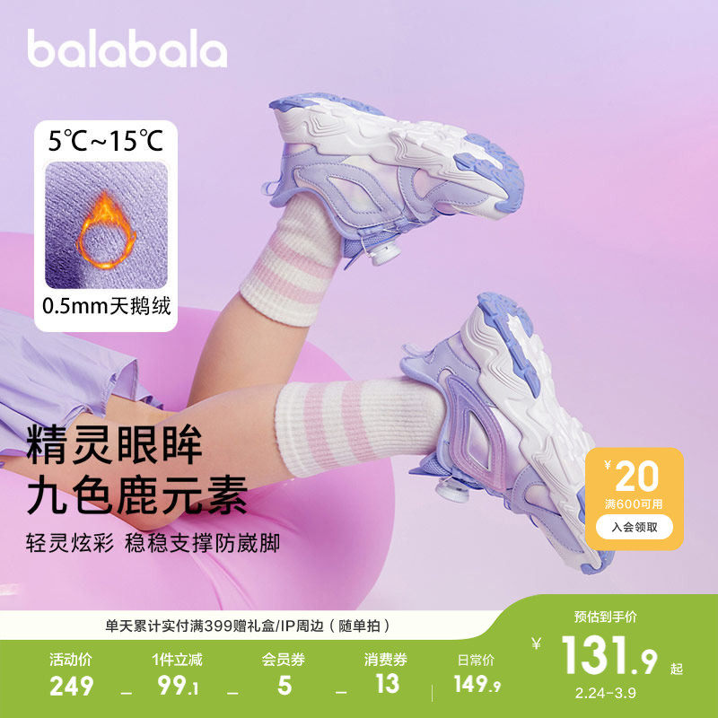 巴拉巴拉童鞋运动鞋儿童女童慢跑鞋秋冬鞋子老爹鞋甜美防滑潮舒适
