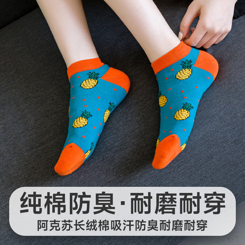 花袜子男女短袜夏季纯棉吸汗防臭彩色条纹格子拼色图案船袜个性潮