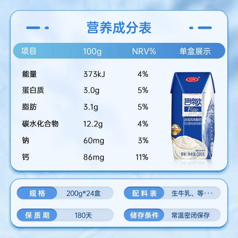 三元芭缔欧冰岛常温风味酸奶/整箱营养早餐风味酸奶