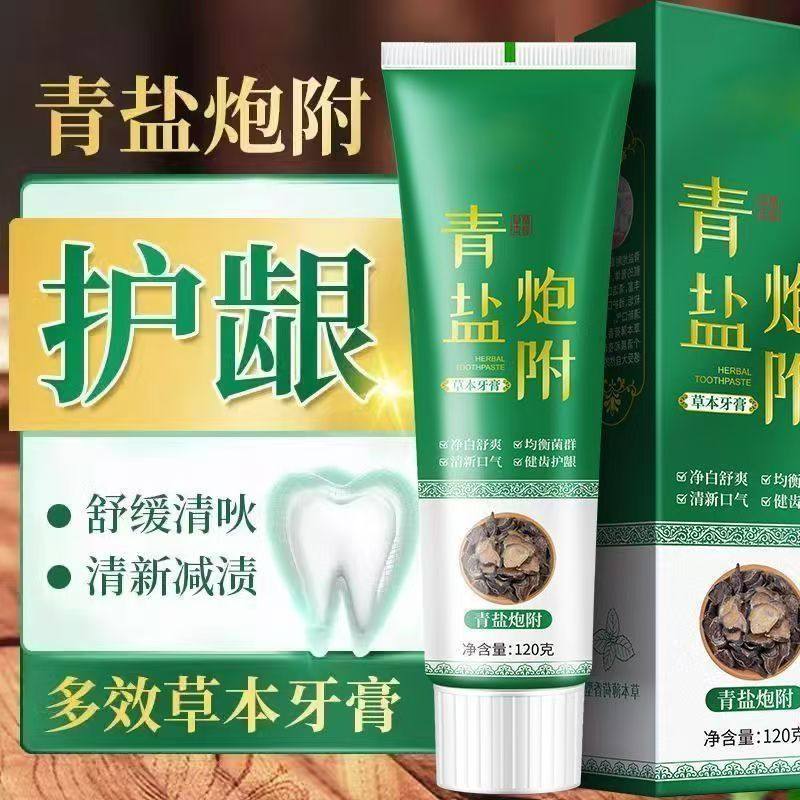 青盐炮附子牙膏倪海厦老师推荐刷牙粉中药固齿洁白护龈青盐泡芙子