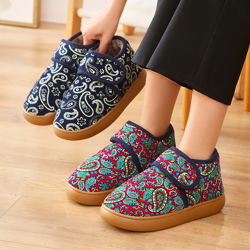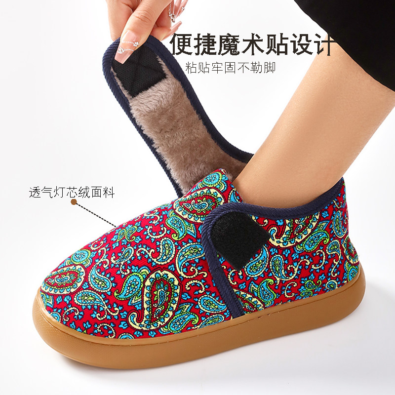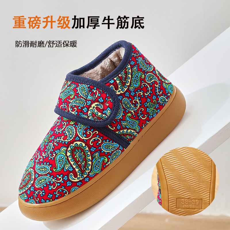 老人棉拖鞋冬季魔术贴加厚防滑牛筋底室内外包跟加绒中老年妈妈鞋