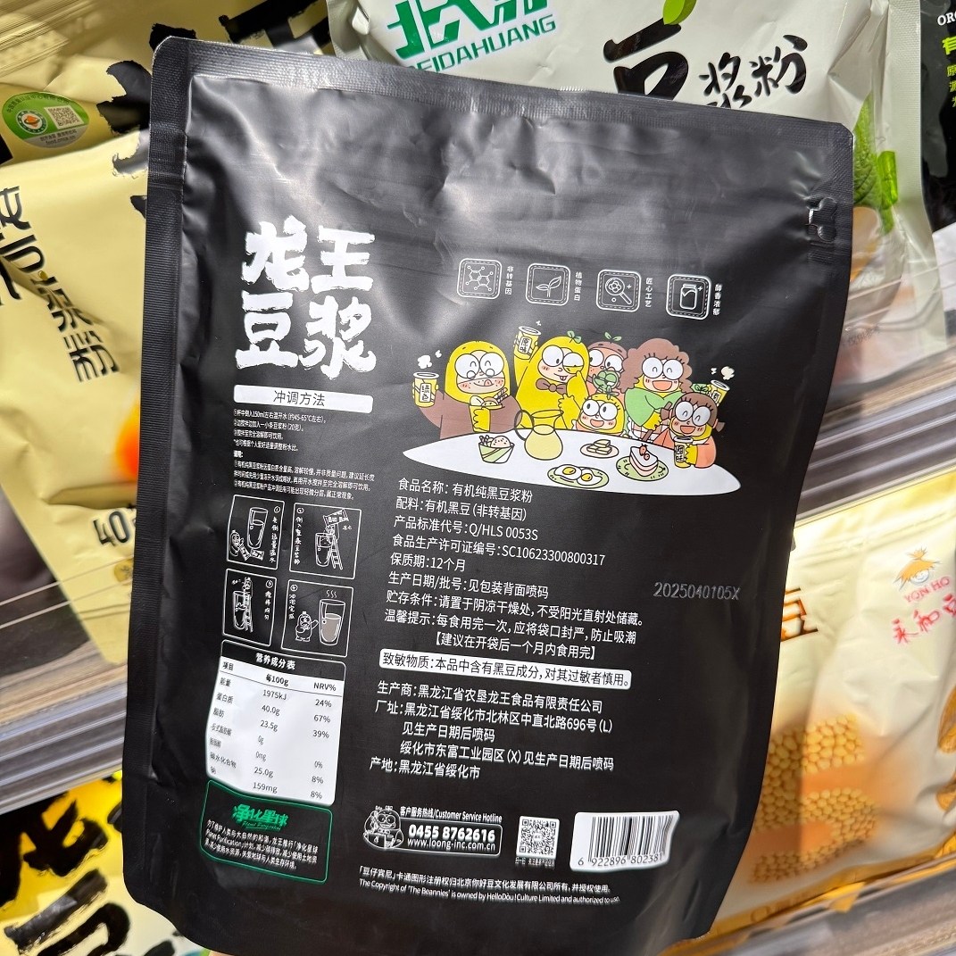 胖东来龙王豆浆有机纯黑豆浆粉无添加非转基因黑豆豆浆粉有机大豆