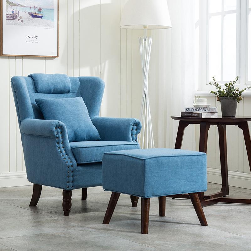 美式复古单人沙发北欧简约卧室休闲老虎椅田园小户型布艺沙发