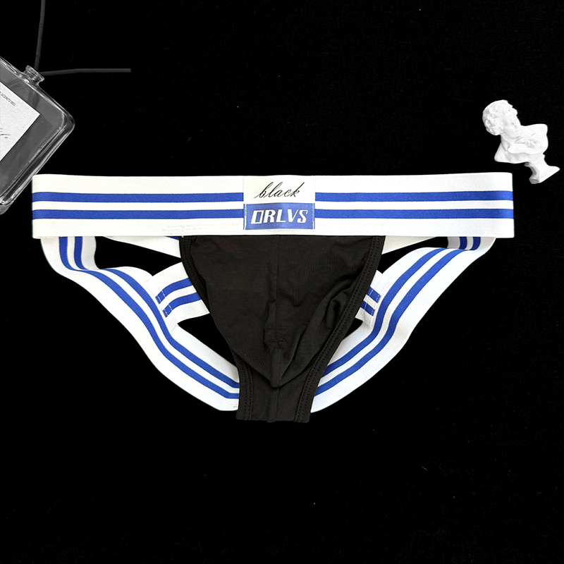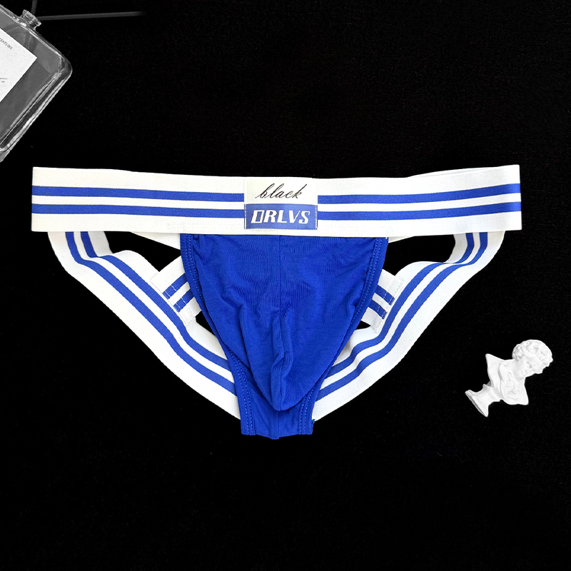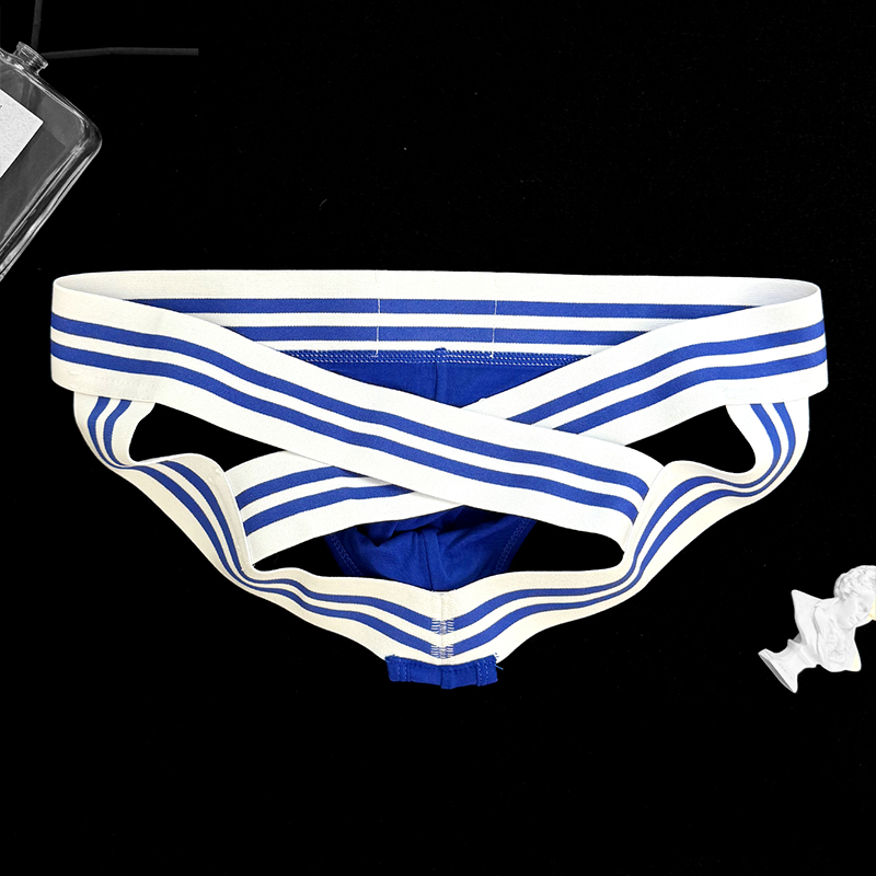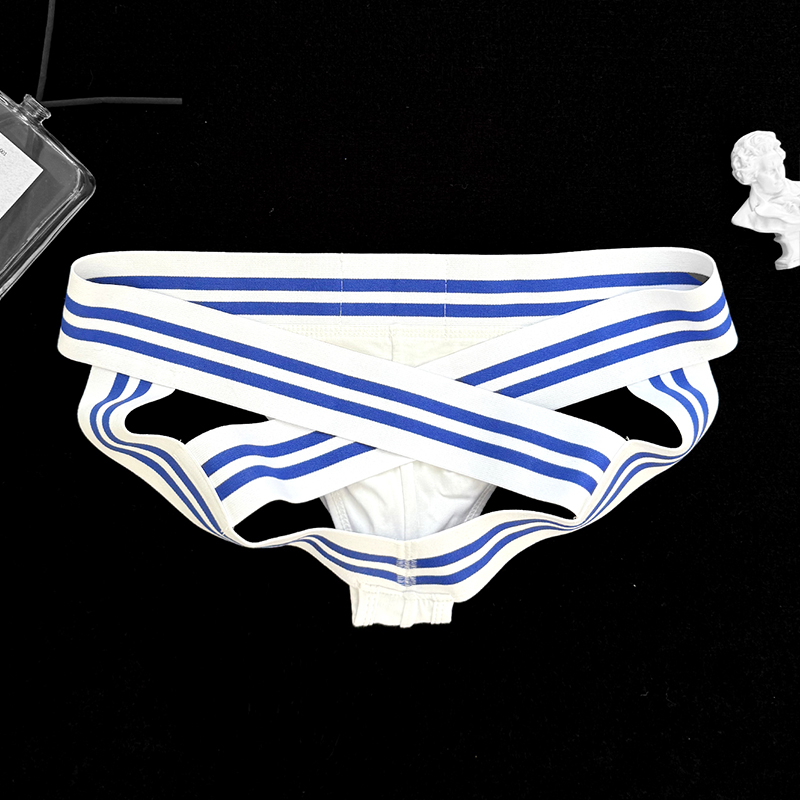 ORLVS男丁字内裤交叉双丁莫代尔海蓝条纹U凸性感低腰提臀运动青年
