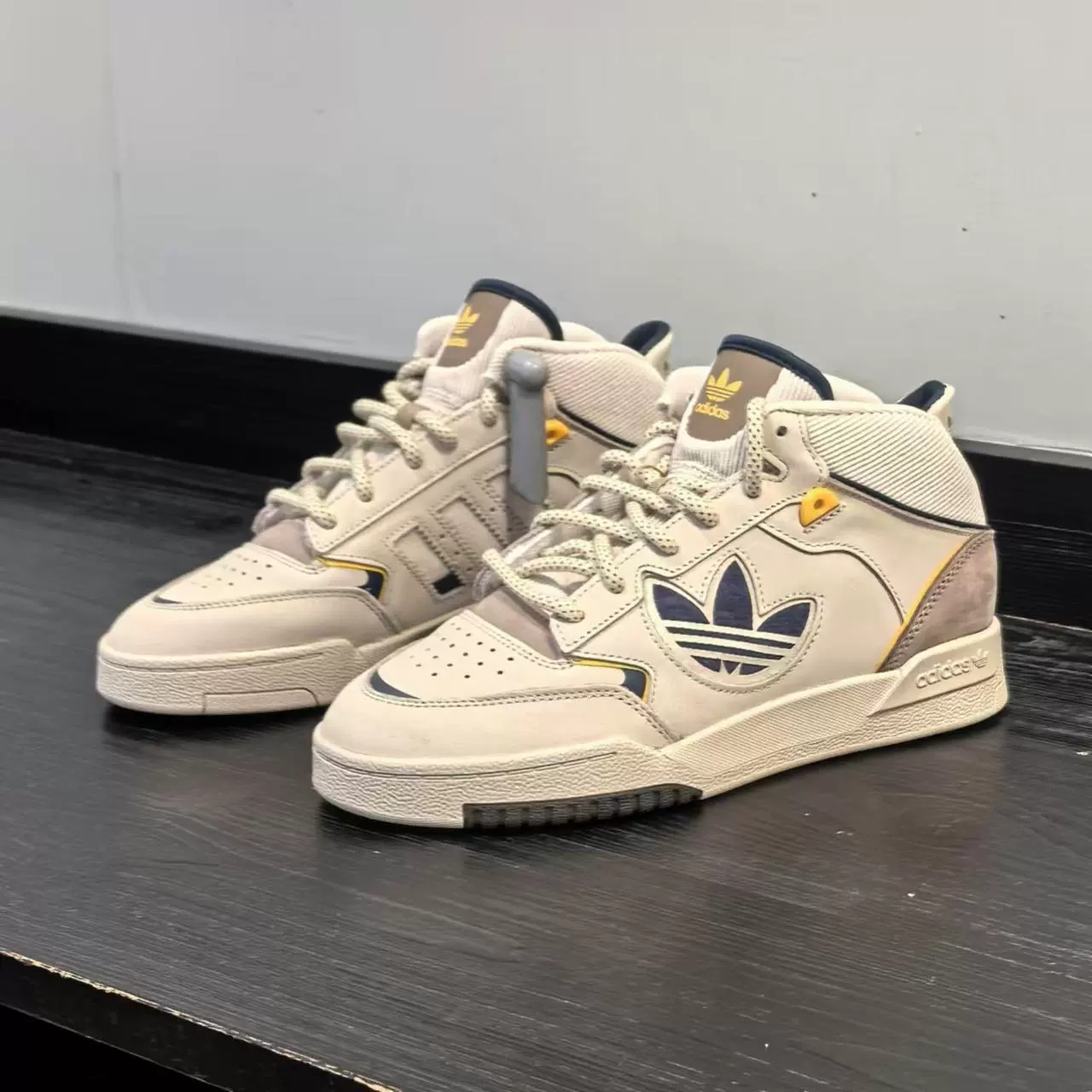阿迪达斯三叶草高帮鞋男女春季新款皮面休闲鞋百搭保暖篮球板鞋