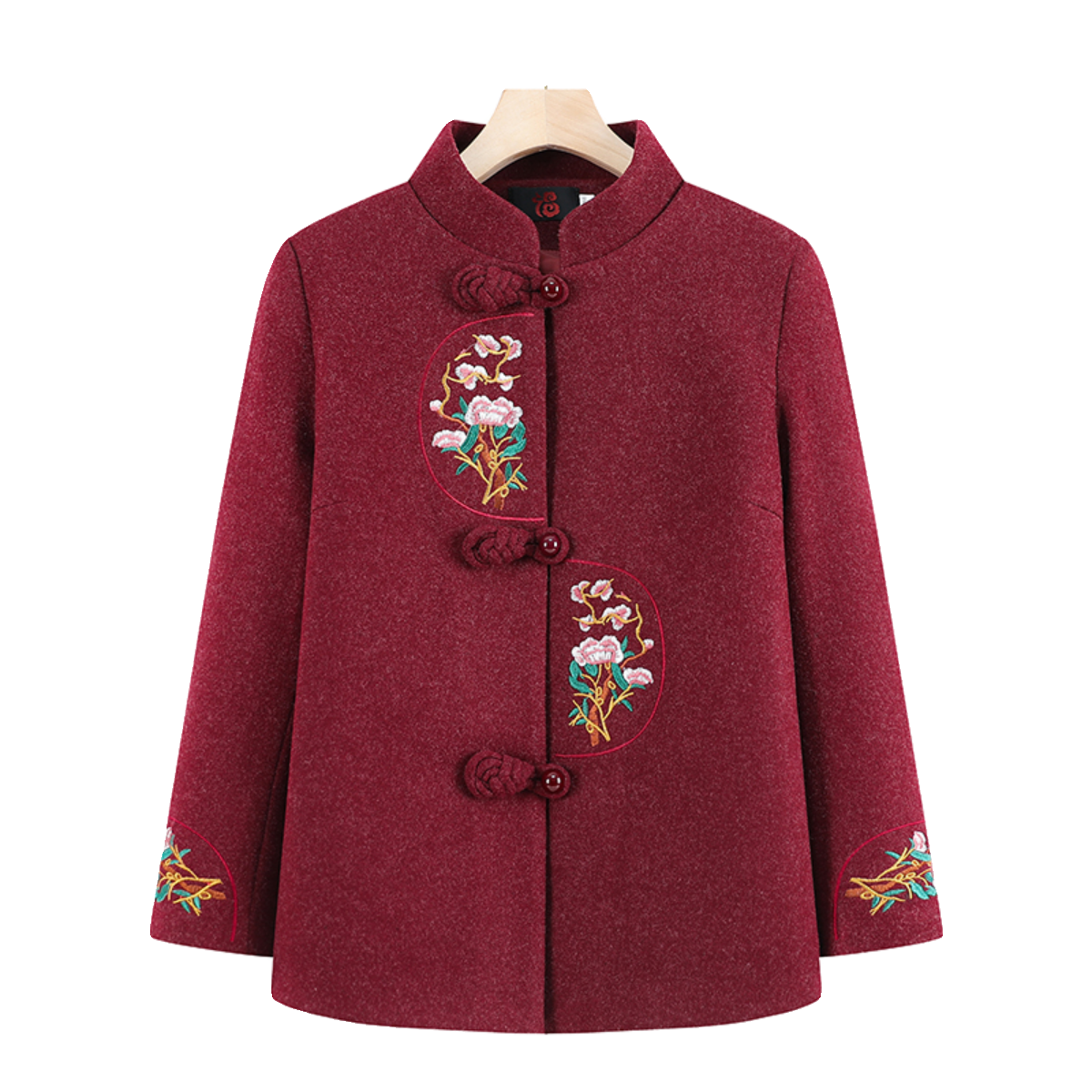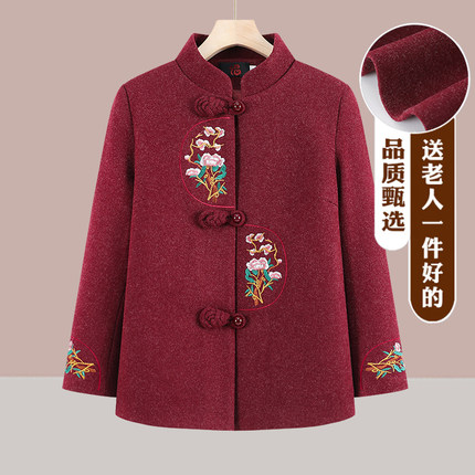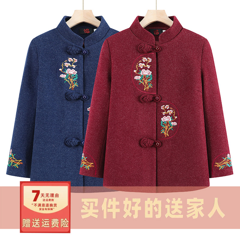 老人奶奶唐装春秋外套女70岁80中老年人妈妈秋冬毛呢上衣2025新款