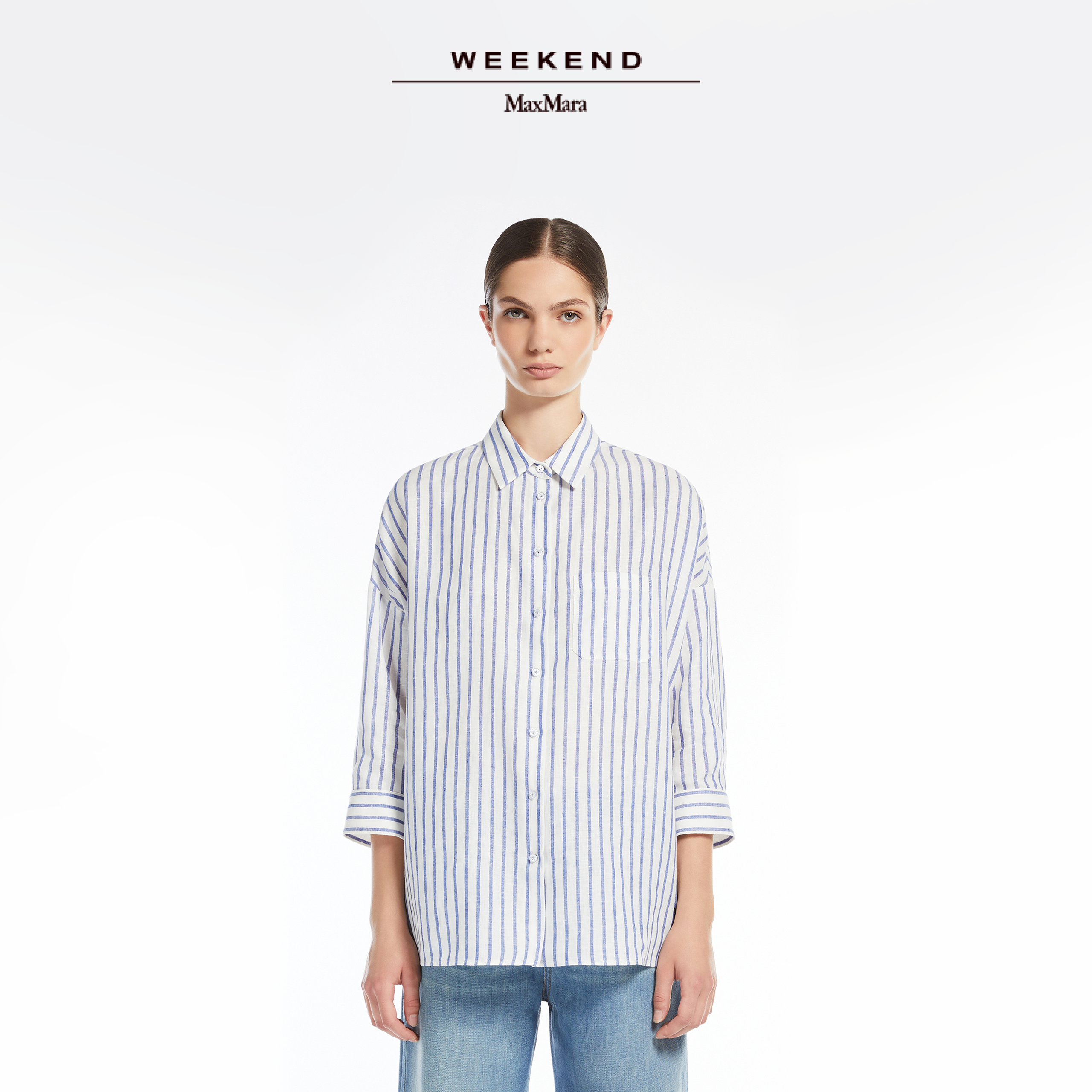 Weekend MaxMara 2025春夏女装亚麻条纹衬衫5111085206