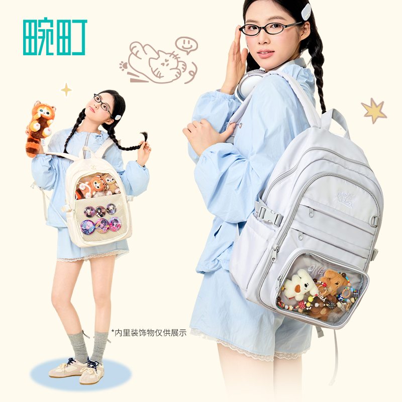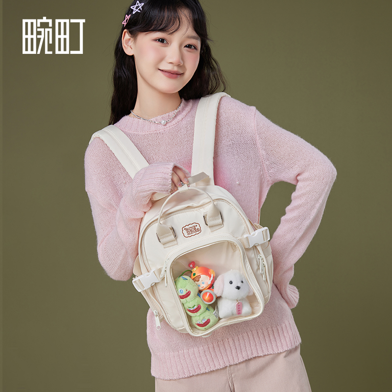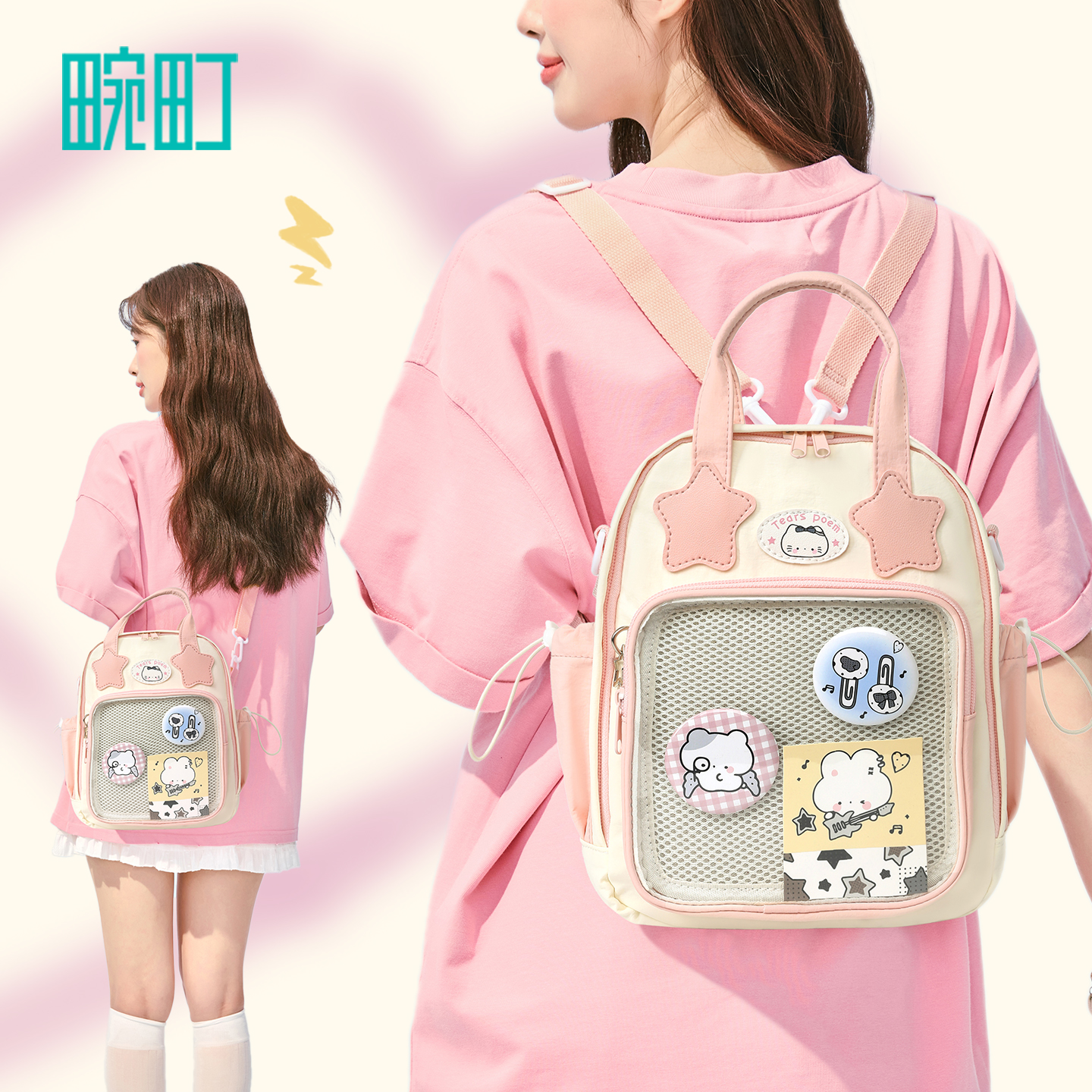 畹町出游双肩包女学生上课背包奶油芝士吧唧晒娃包手提小食量痛包