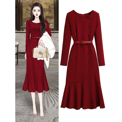 法式轻奢高级感鱼尾连衣裙2025新款高端遮肉显瘦气质减龄长裙8883
