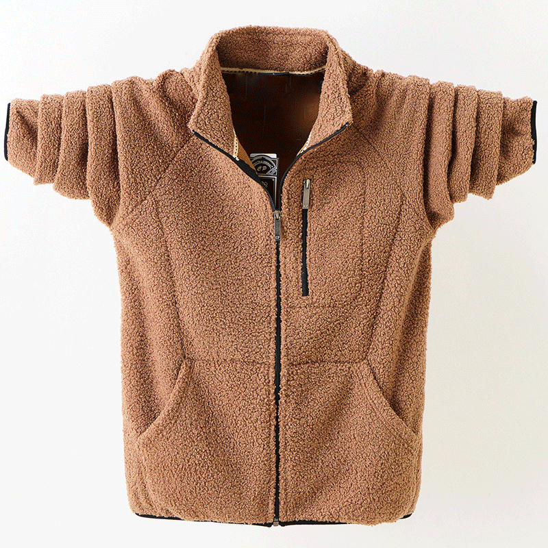 新秋冬加绒厚欧美进口泰迪绒卫衣夹克加肥大保暖毛绒外套