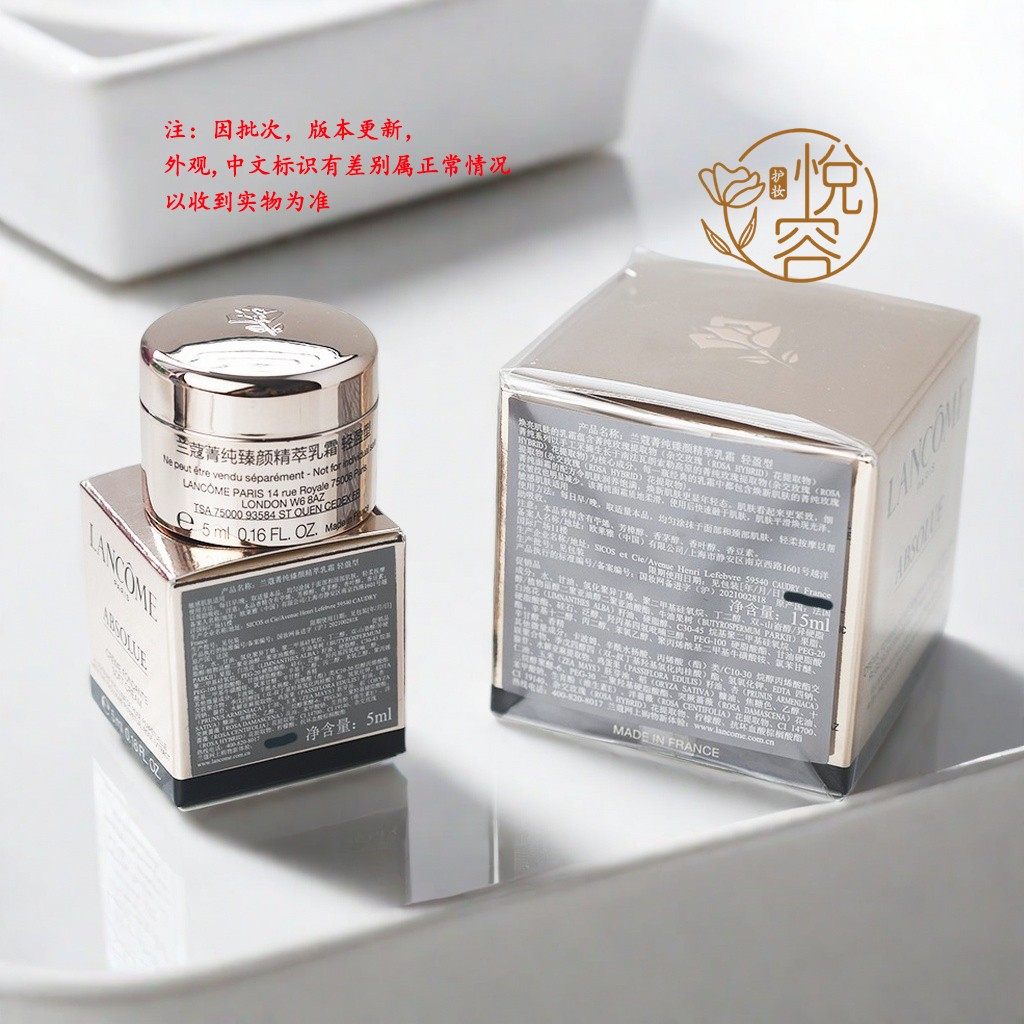 三瓶价 兰蔻菁纯臻颜精萃焕亮乳霜5ml轻盈型面霜流云霜中小样15ml