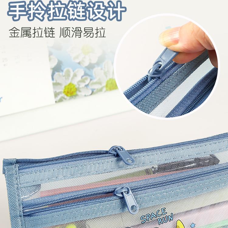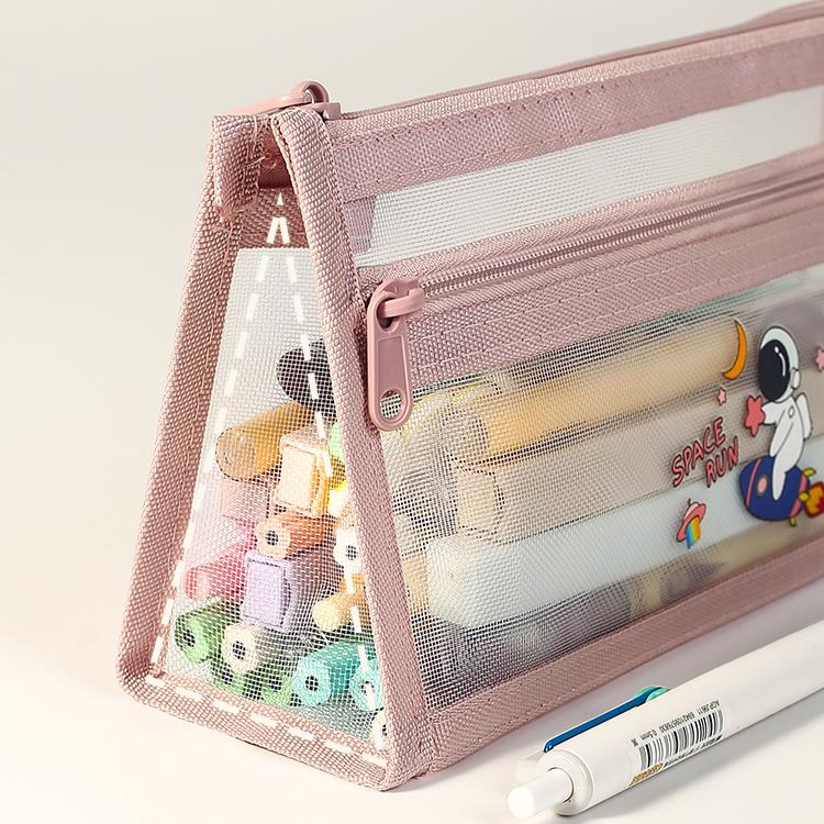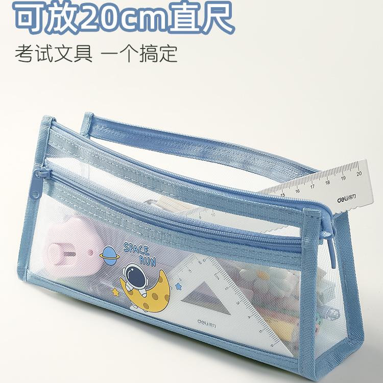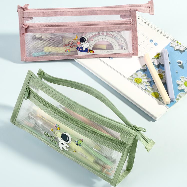 新款简约透明笔袋考试专用文具袋铅笔袋文具盒学生儿童双层大容量男女孩款2024高颜值网纱收纳袋单层粉色绿色