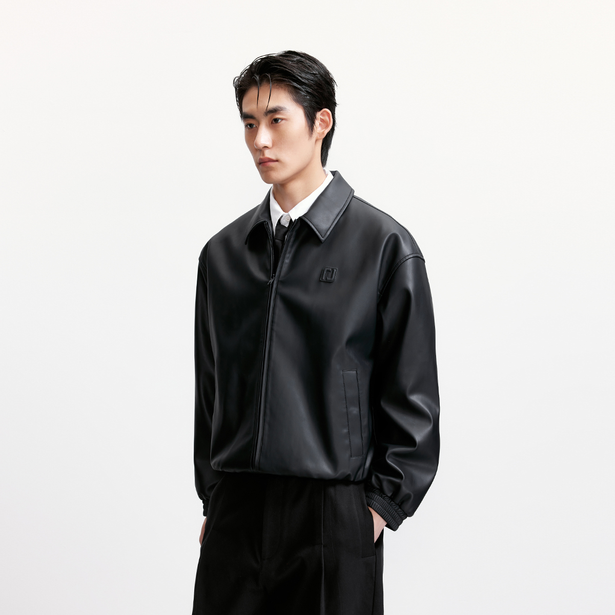 杰克琼斯奥特莱斯夹克男装秋季翻领略宽松两侧插袋松紧下摆款上衣