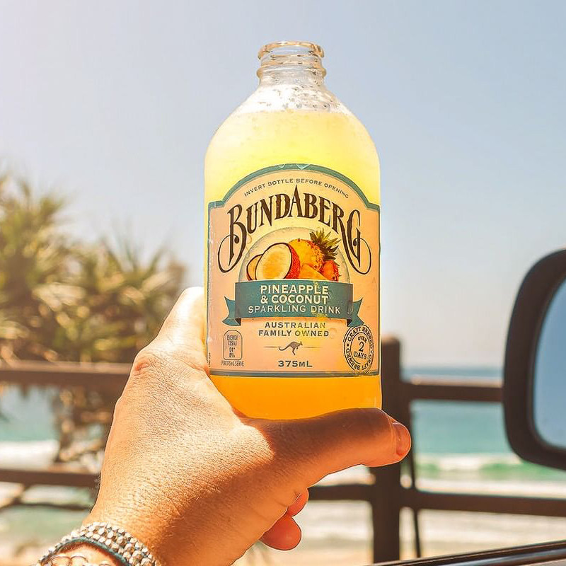 澳洲进口Bundaberg宾得宝菠萝椰汁味汽水饮料果味碳酸果汁气泡水