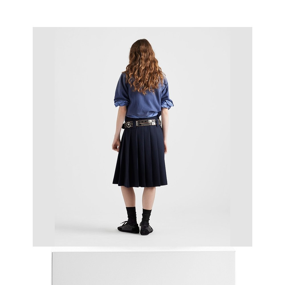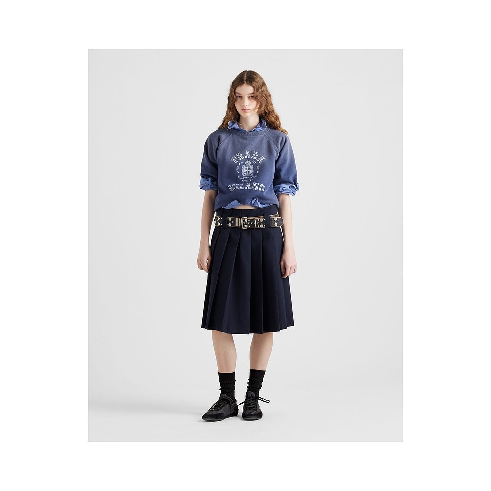 自营欧洲直邮Prada普拉达 女士蓝色棉字母徽章印花短袖T恤