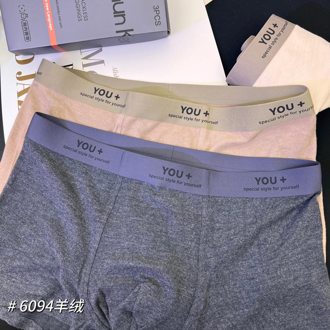 魅丽翘2024秋冬羊绒磨毛保暖字母运动男士平角内裤抗菌舒适四角裤