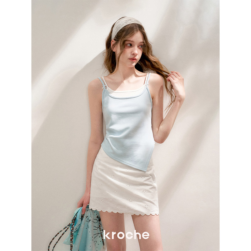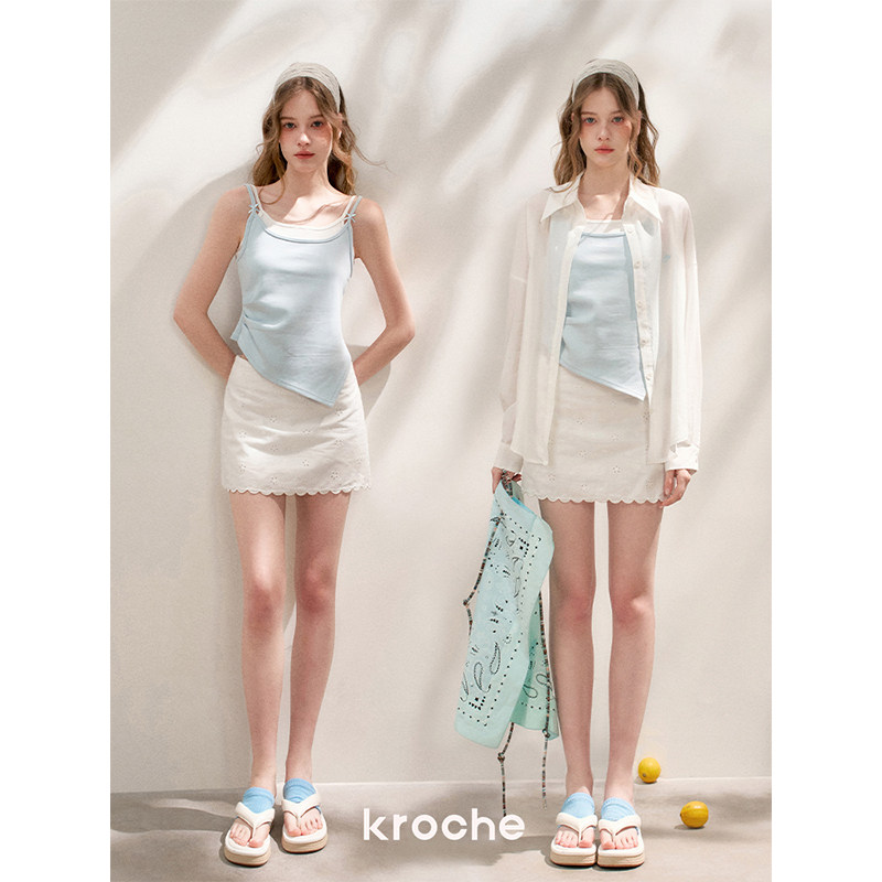 卢洋洋同款 Kroche 浪漫法式 镂空刺绣 蕾丝高腰A字半身裙