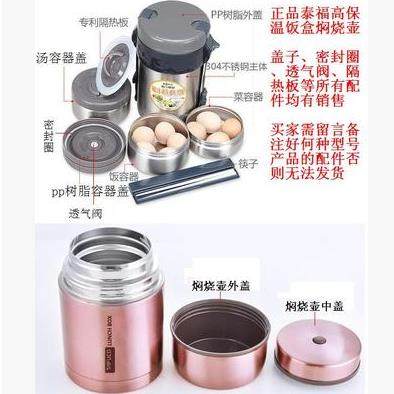 泰福高保温饭盒桶焖烧壶盖子隔热板提手密封圈气阀保温包筷子勺子