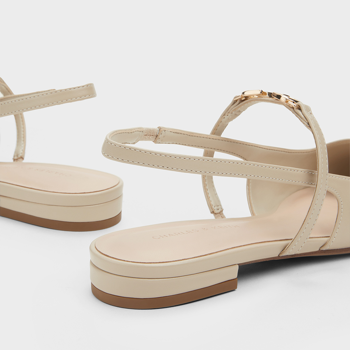 CHARLES&KEITH秋冬女鞋CK1-70920144法式尖头平底玛丽珍包头凉鞋