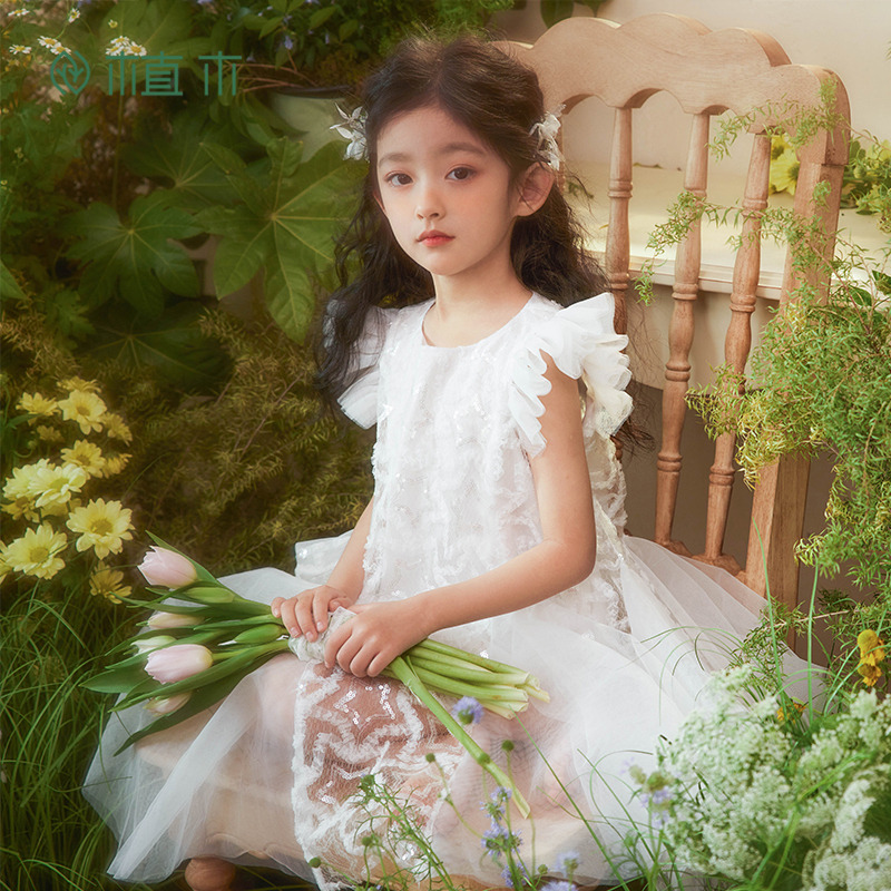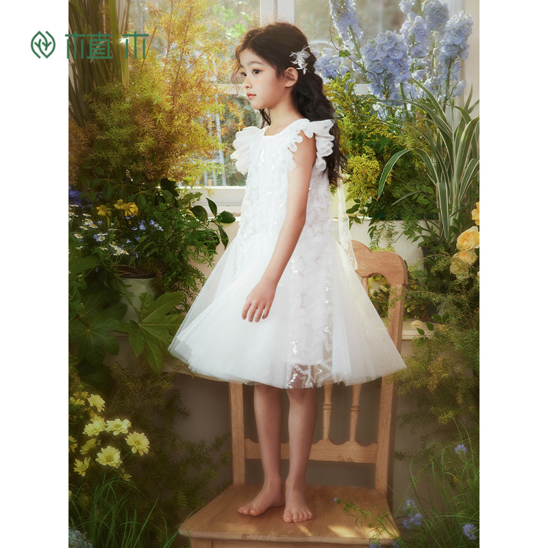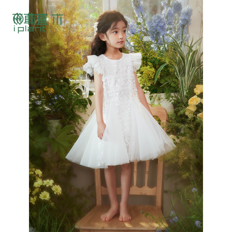 植木童装亮闪星星蓬蓬纱裙荷叶飞袖女童连衣裙2025夏装新款儿童潮