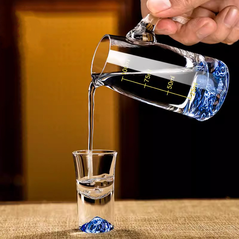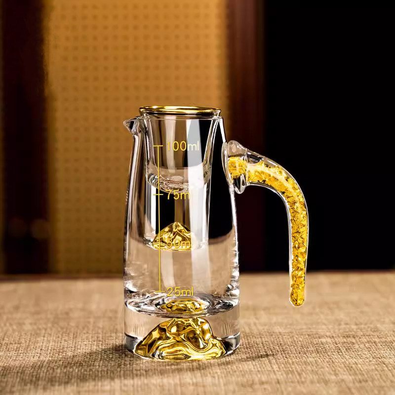轻奢高档中式家用金箔白酒杯套装饭店玻璃杯分酒器酒具子弹杯酒盅