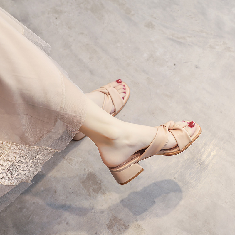 2022年d新款h夏季百搭中跟粗跟仙女网红凉拖鞋女外穿温柔高跟一字