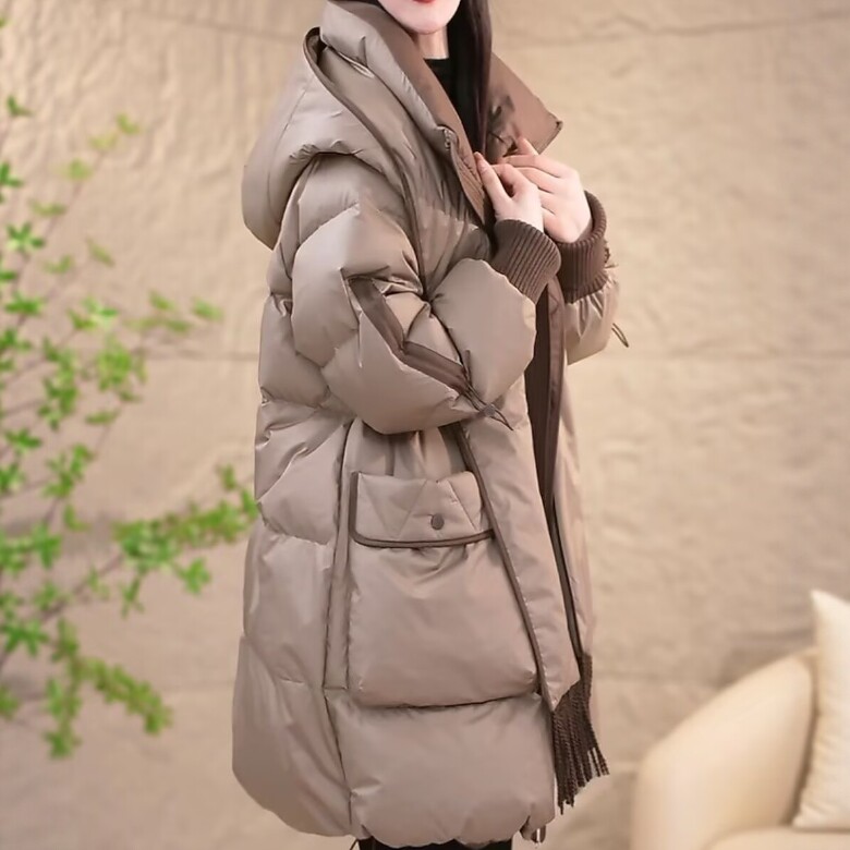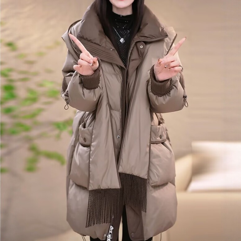 高档专柜轻奢精纺羽绒棉服大码遮肉宽松防寒保暖大衣外套帽子可拆