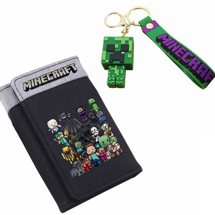 MC我的世界短款钱包卡通周边中小学生男女三折帆布钱夹儿童零钱包