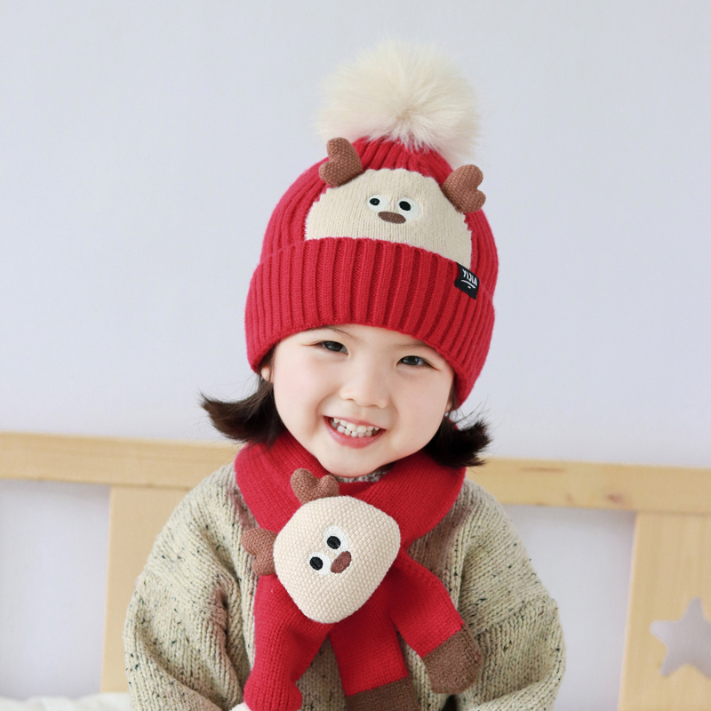 儿童帽子秋冬季宝宝婴幼儿针织帽毛线帽加厚保暖围巾男护耳帽冬季