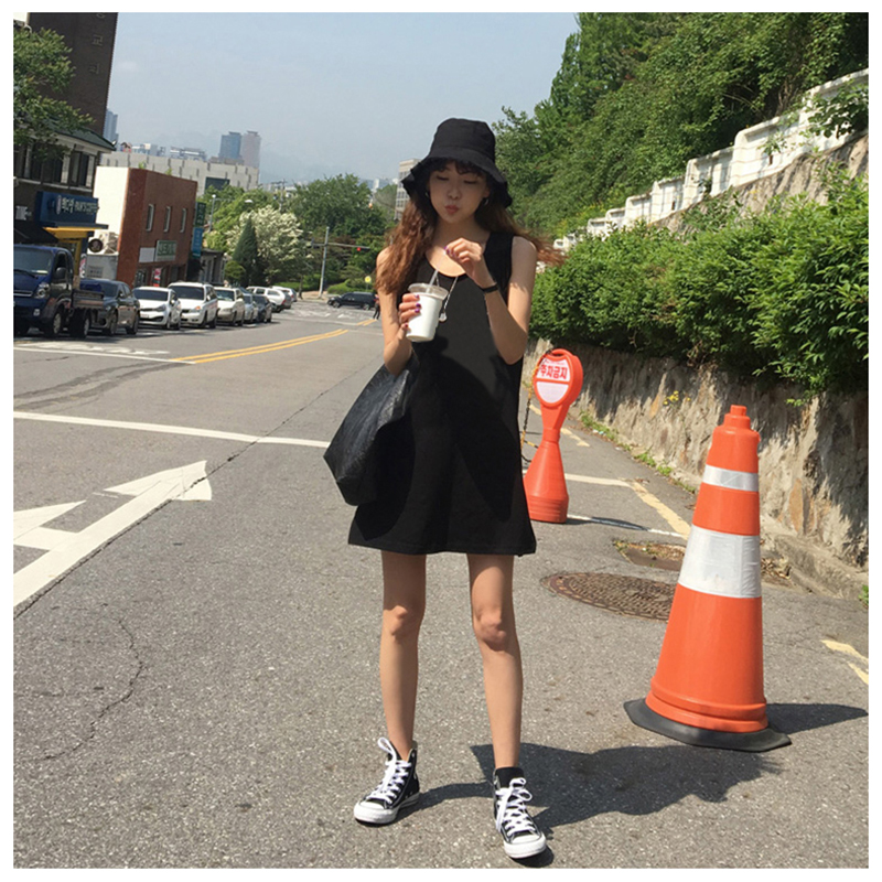 大码遮肚显瘦宽松加肥加大200斤背心裙女胖mm无袖烂边吊带连衣裙