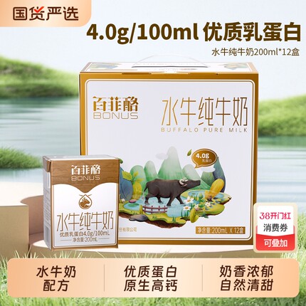 百菲酪水牛纯牛奶200ml*12盒整箱4.0g优质乳蛋白高钙营养早餐牛奶