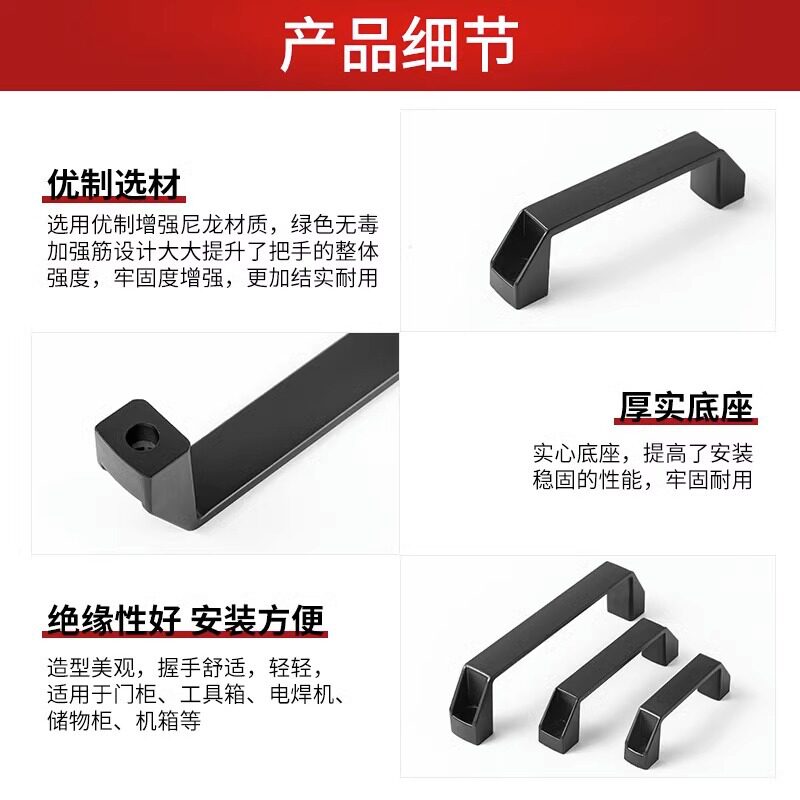 铝合金拉手加厚黑色尼龙工业用机床把手明装方形塑料机箱柜门提手