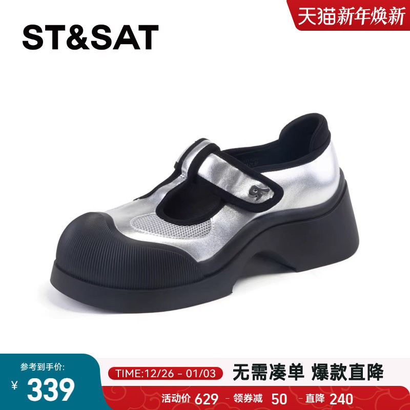 星期六厚底单鞋春季新款玛丽珍甜酷魔术贴大头鞋女SSC1111099