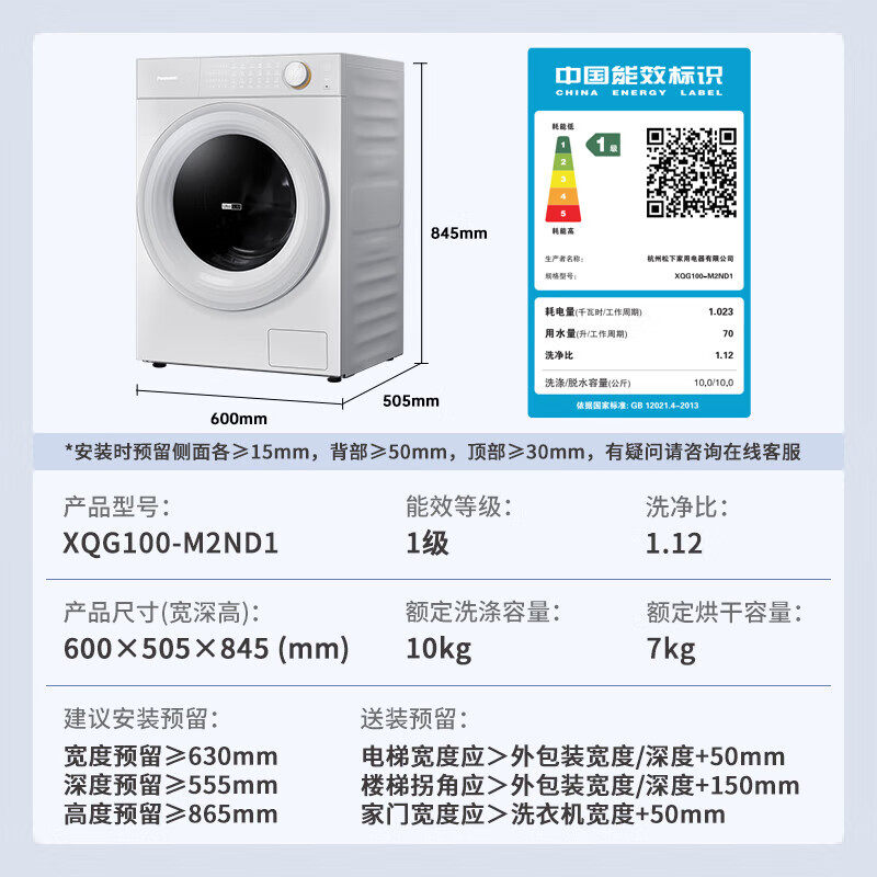 松下10kg超薄光动银版洗烘M2ND1