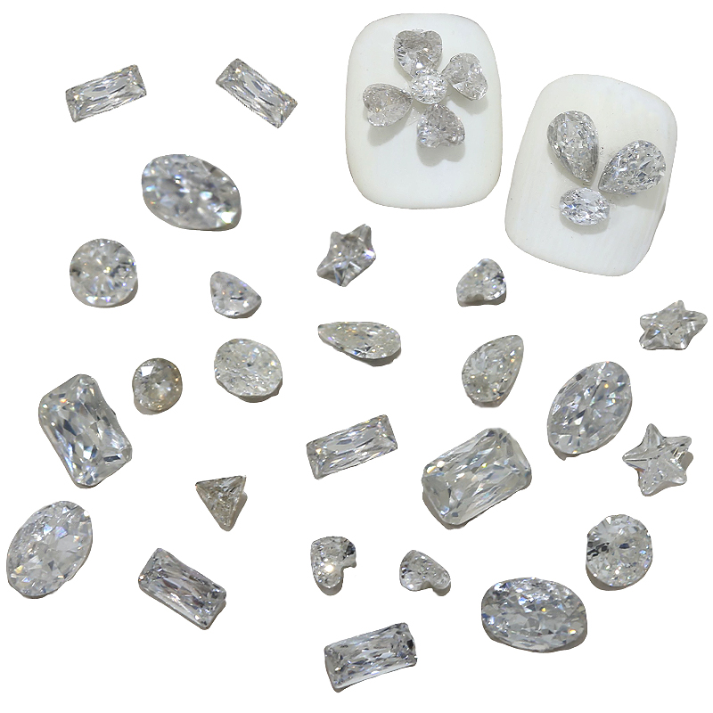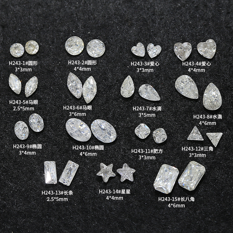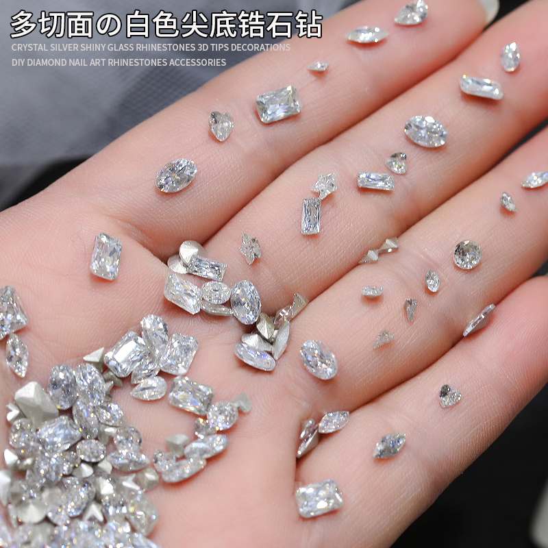 网红超闪白色尖底锆石美甲饰品多切面异形马眼爱心穿戴甲指甲装饰