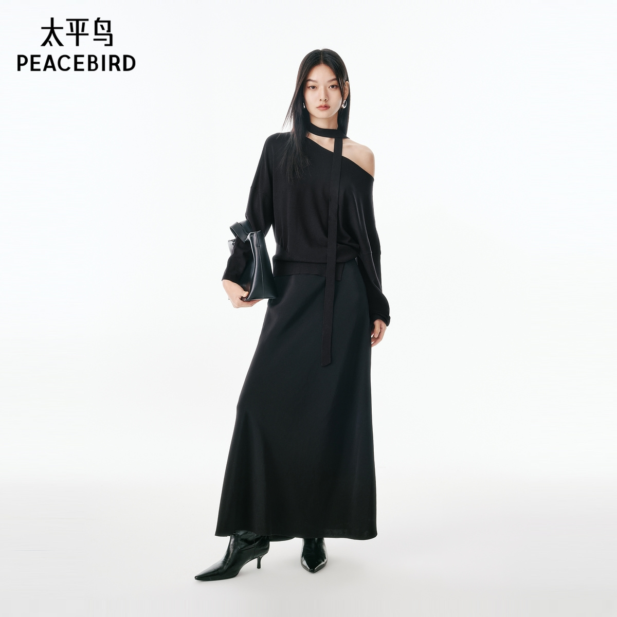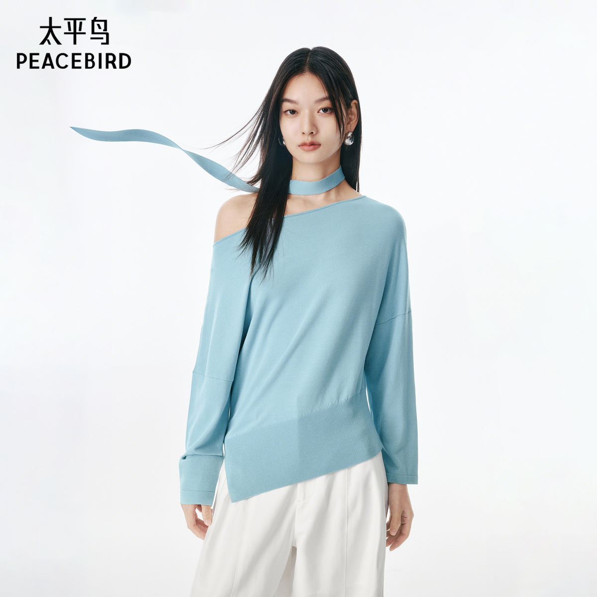 太平鸟斜肩温柔套头针织衫25秋季新款女士可拆卸飘带气质优雅毛衫