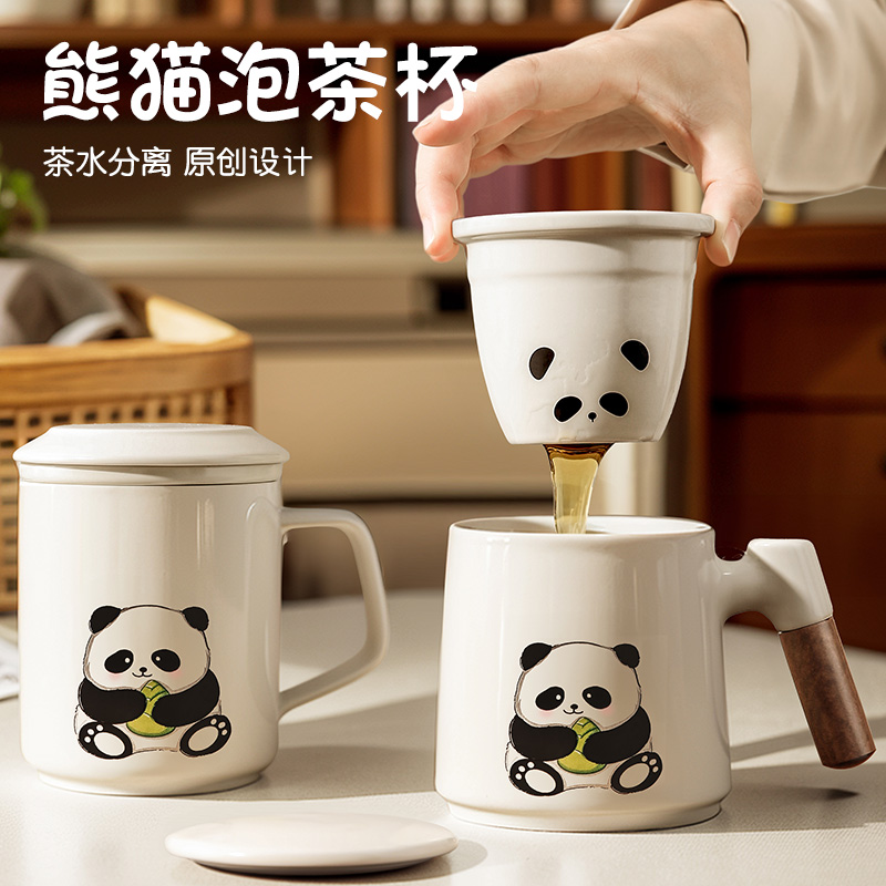 宝选泡茶杯茶水分离杯子办公室马克杯女士个人专用熊猫陶瓷水杯