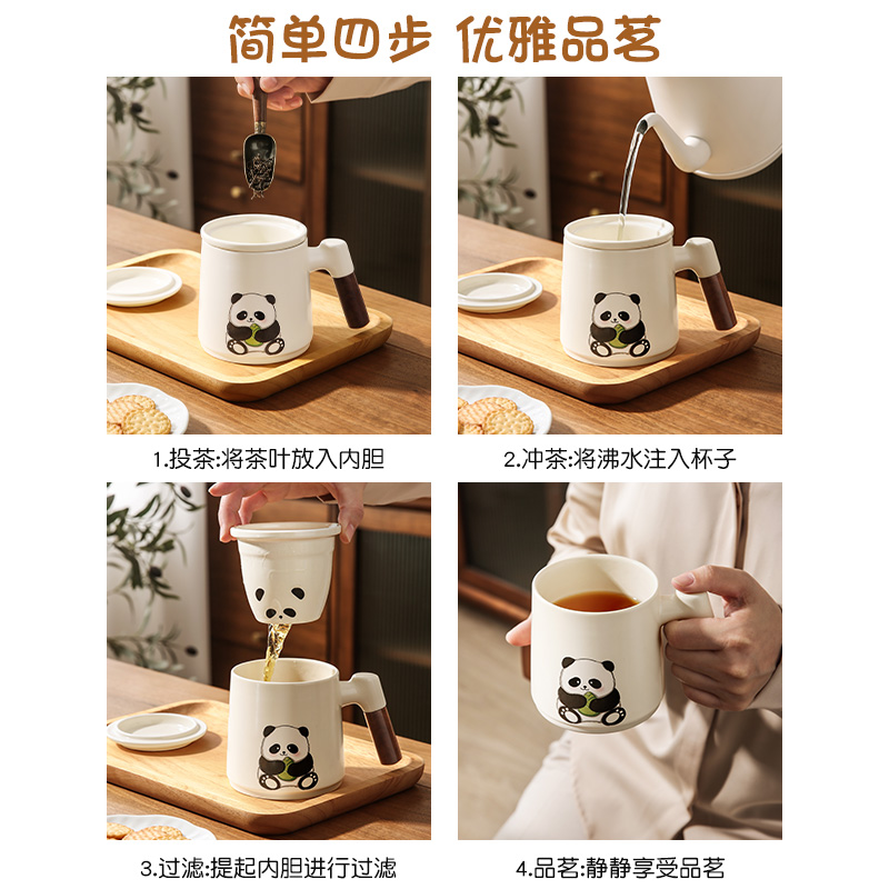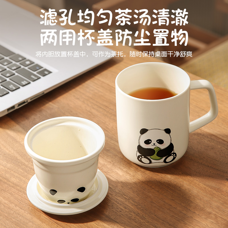 【熊猫陶瓷水杯】茶水分离杯子