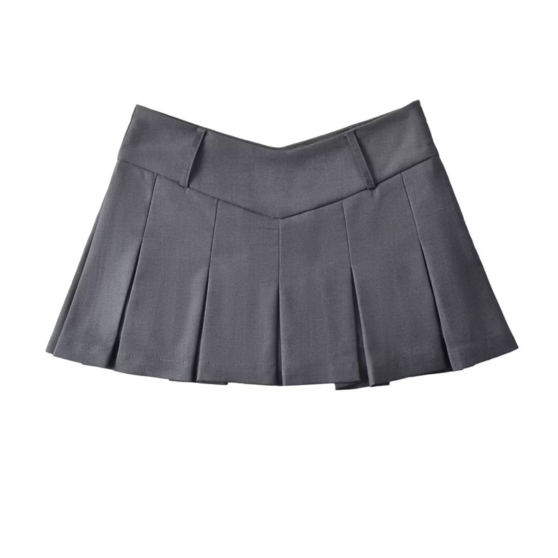 liviahome 美式复古学院辣妹V型腰百褶半身裙显瘦a字超短裙女秋冬