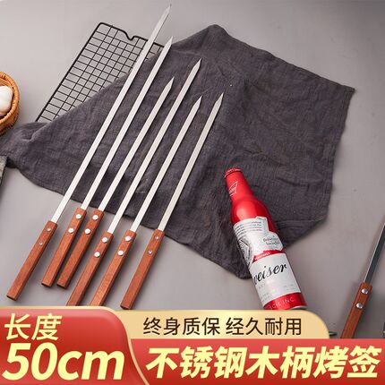 cm羊肉串签子大串大号烧烤签字不锈钢扁签铁钎用具配件商用烤针
