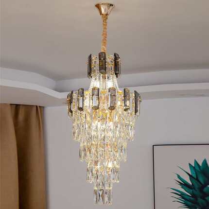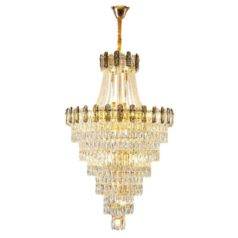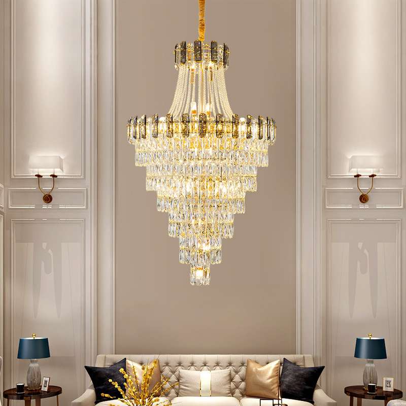 轻奢复式楼客厅水晶大吊灯别墅公寓中空楼中楼跃层楼梯长水晶