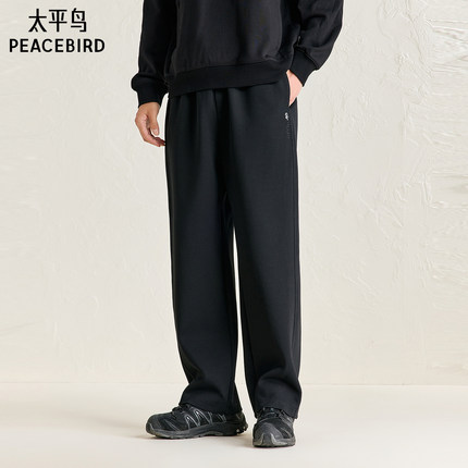 太平鸟男装休闲裤冬季宽松直筒运动黑色长裤宽松户外印花卫裤潮
