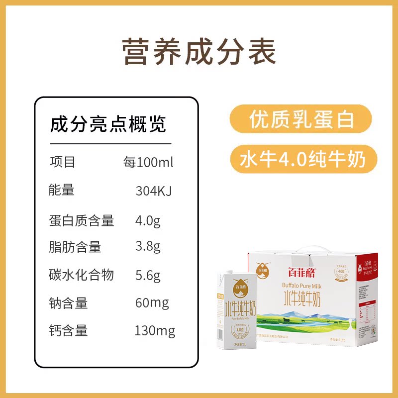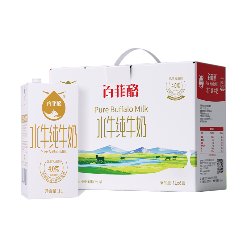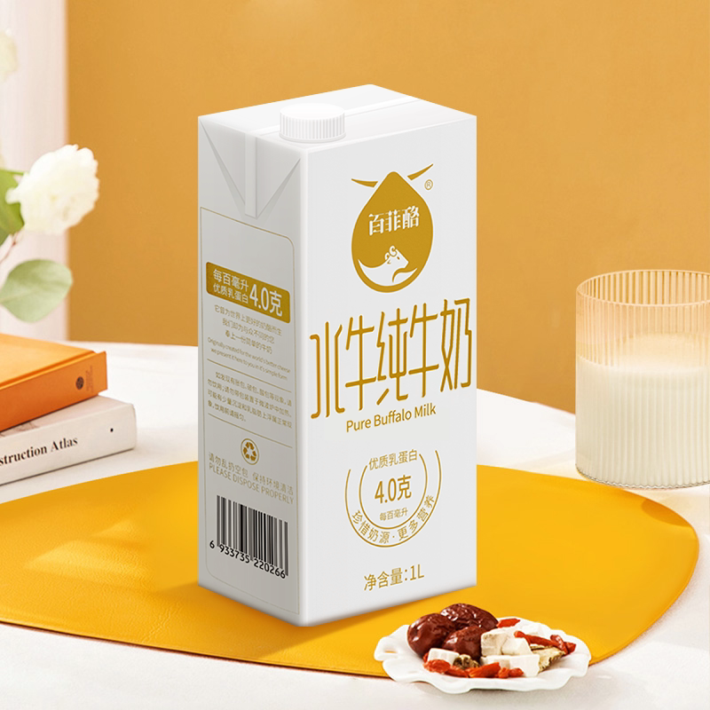 【百菲酪水牛纯牛奶1L】优质乳蛋白4.0g/ml适合全家饮用