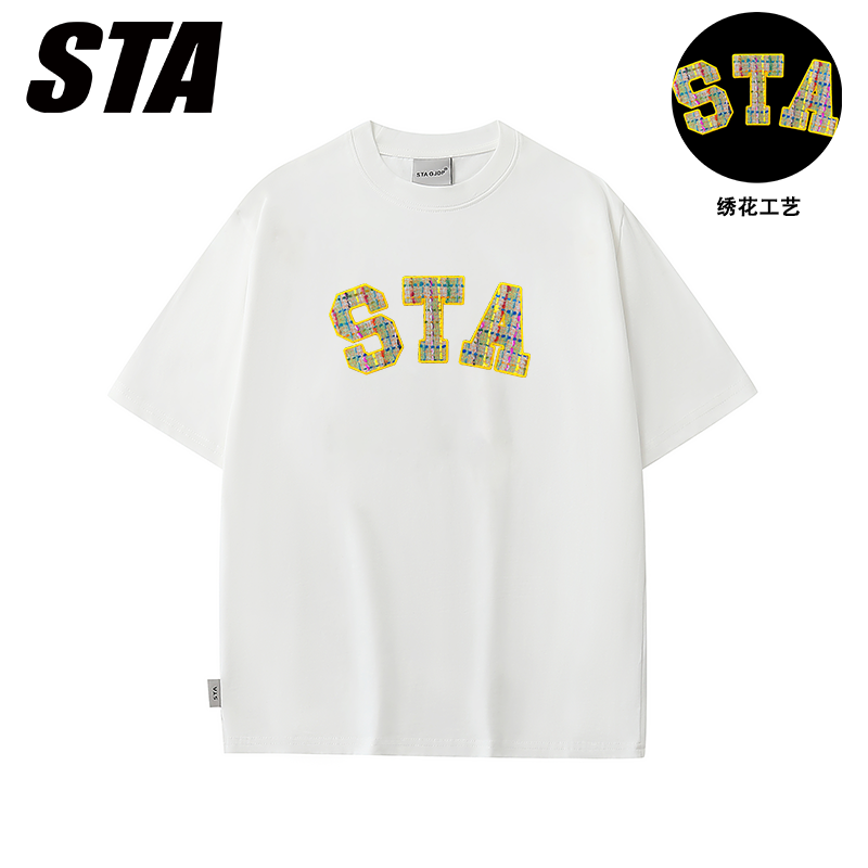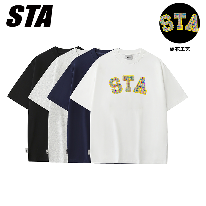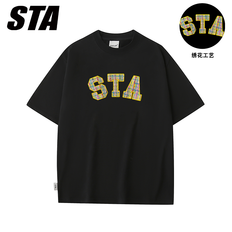 STA GJDP国潮宽松刺绣短袖潮牌设计情侣纯棉复古字母男女重磅T恤