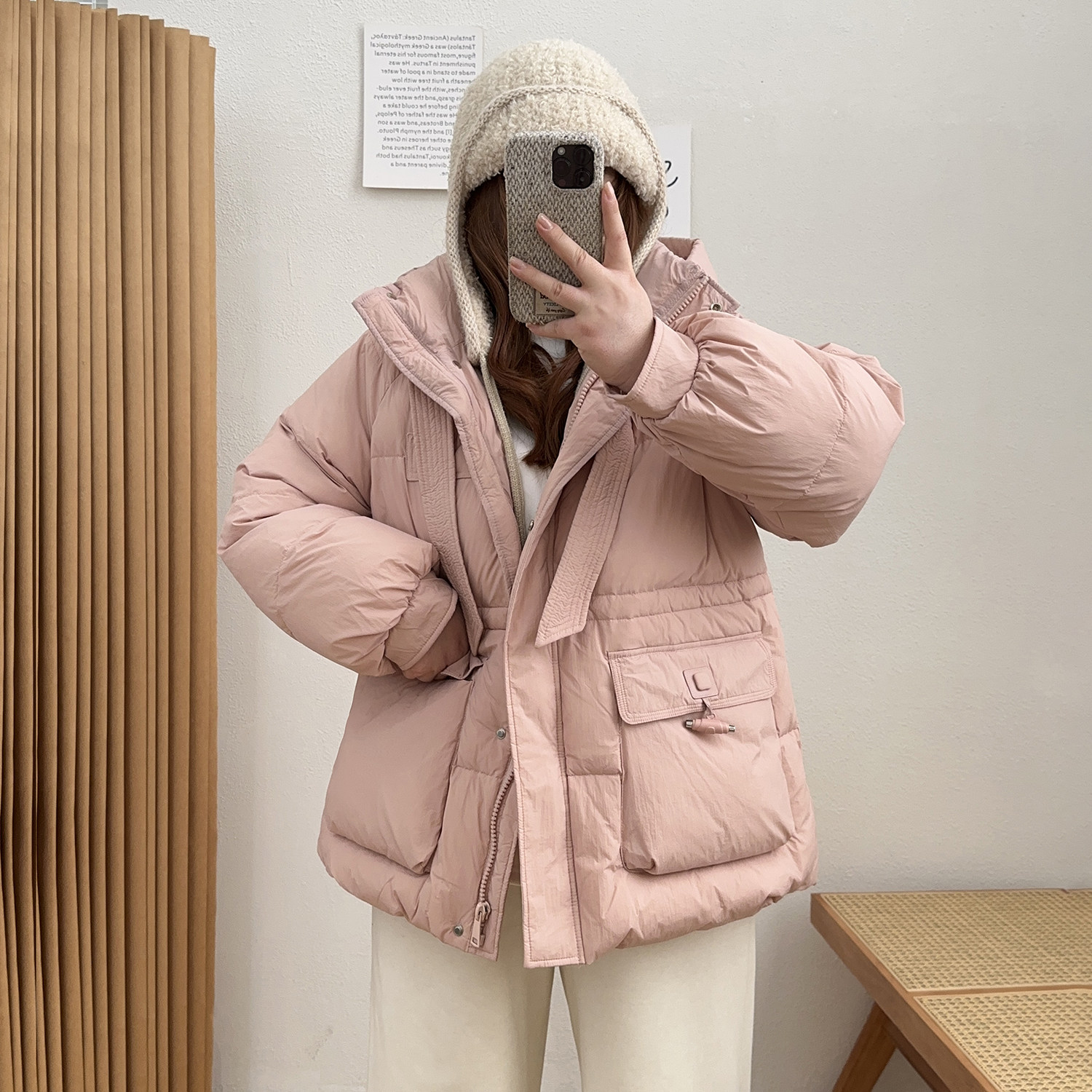 宛宛大码收腰羽绒服女2026冬新款胖mm宽松显瘦白鸭绒保暖连帽外套